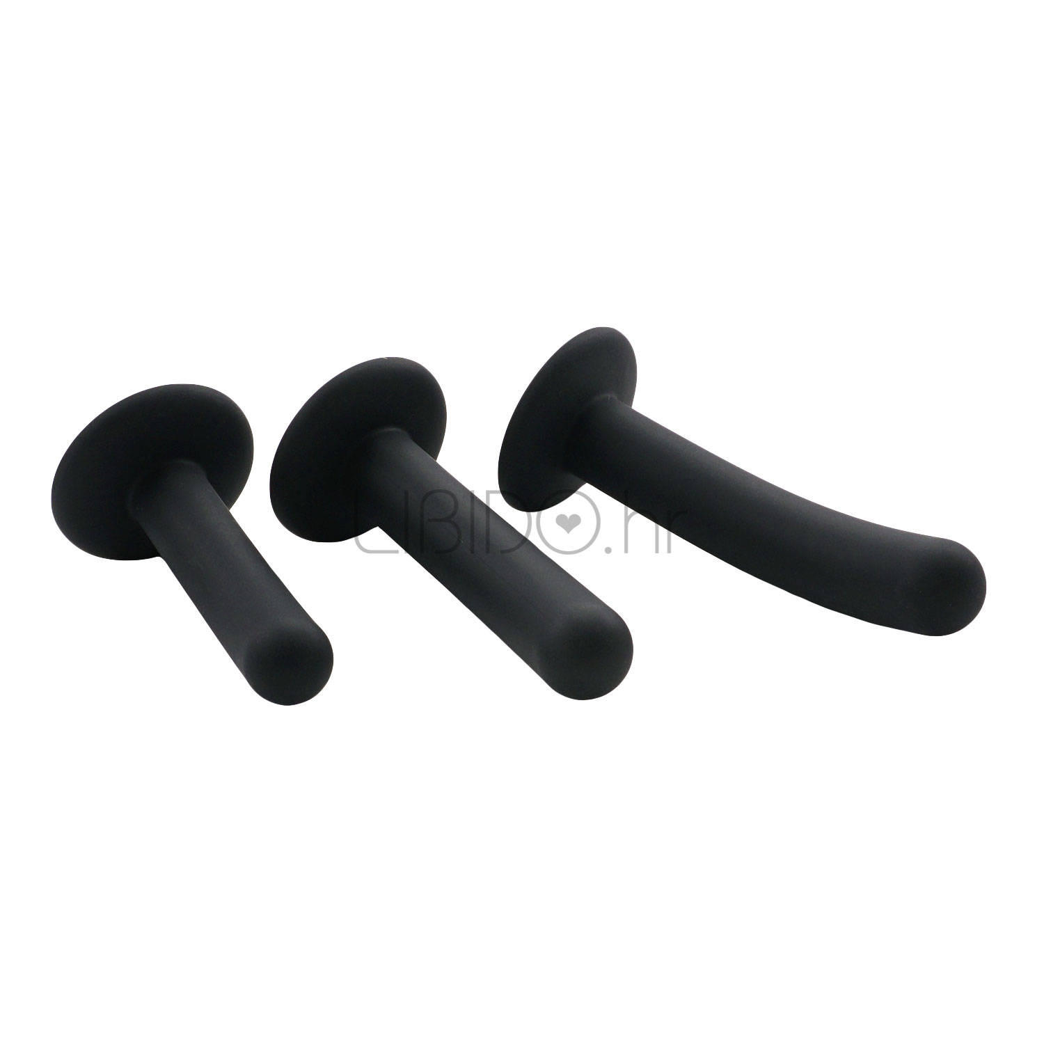 Dilda su idealne veličine za isprobavanje pegginga i svaki je nešto veći i širi od prethodnog kako biste mogli odabrati idealnu dimenziju za maksimalni užitak. Sva tri dilda su djelomično savitljivi, ujednačene širine i svilenkasto glatki na dodir za ugodniju penetraciju. Zakrivljeno tijelo dilda omogućuje intenzivnu stimulaciju prostate prilikom penetracije.
