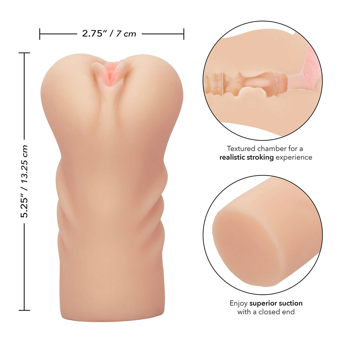 Masturbator je napravljen od nevjerojatno mekog i elastičnog materijala koji savršeno oponaša ljudsko tkivo, a kako je zatvorenog kraja, pri upotrebi dolazi do pojave vakuuma što se očituje kao osjećaj intenzivnog sisanja.