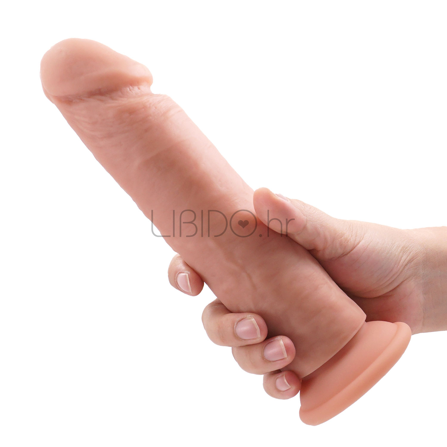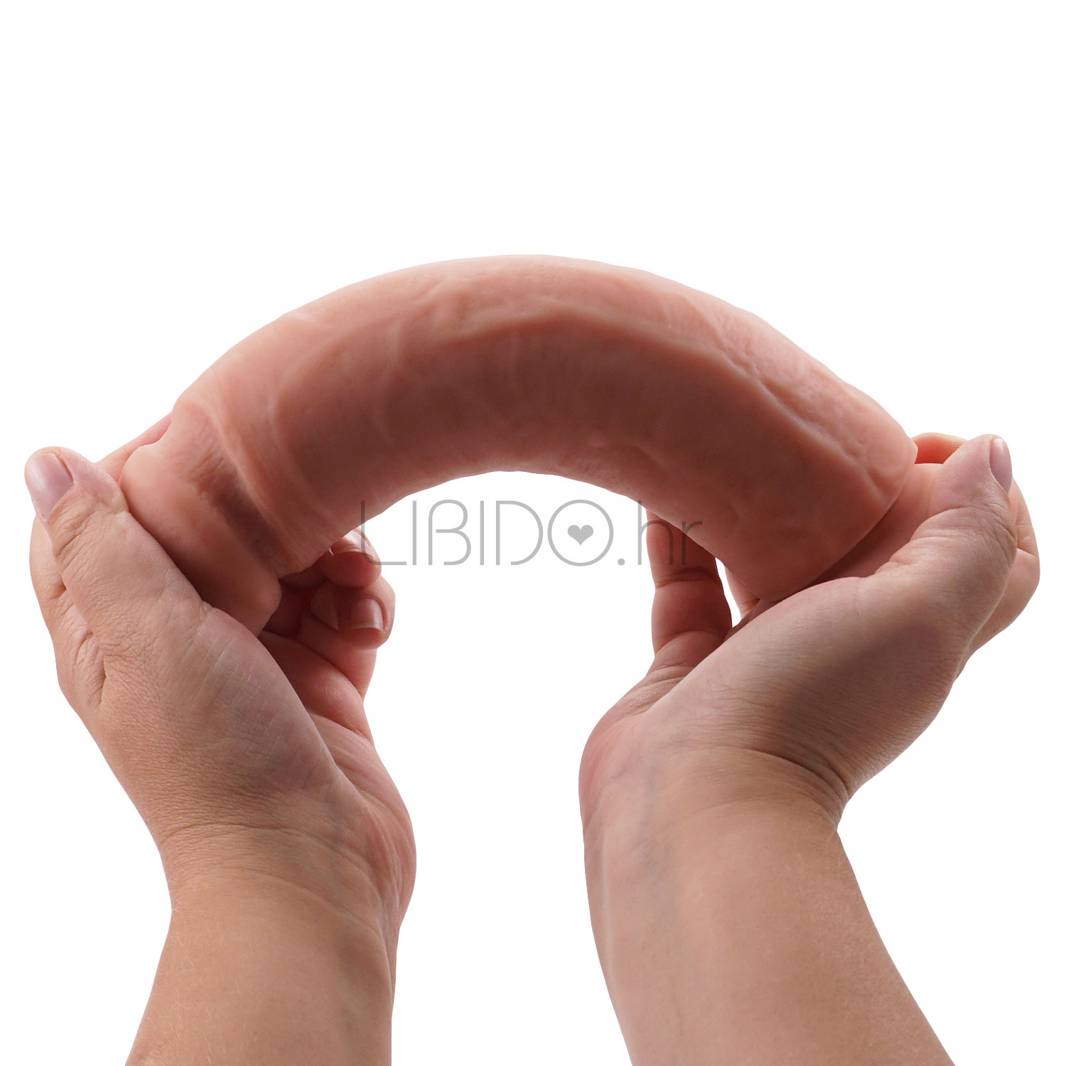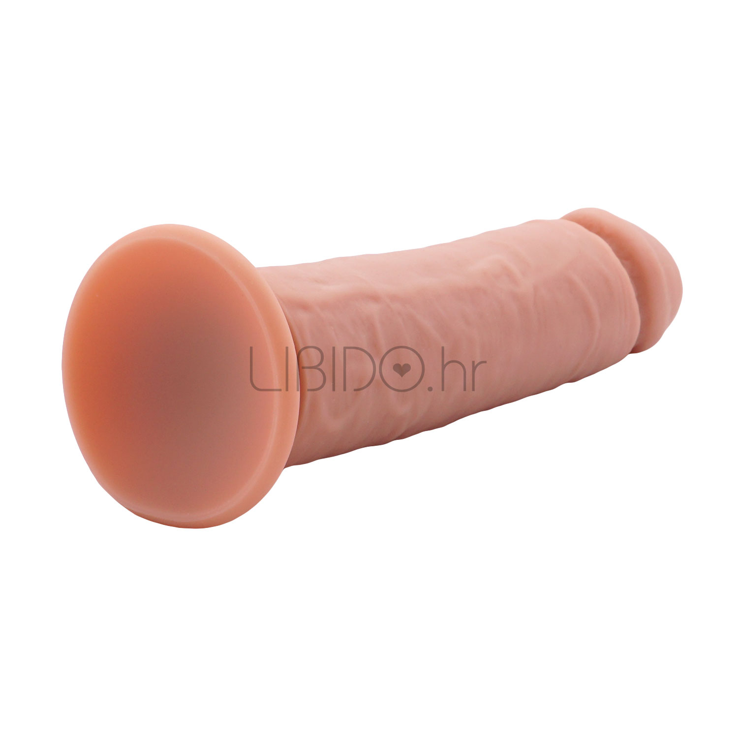 R25 je realistično oblikovan, s predivno velikim glavićem, naborima kože i sitnim porama te blago istaknutom venskom teksturom (koja vas dodatno stimulira pri penetraciji). Kako je napravljen od liquid silikona, izrazito je senzualan pri korištenju – mekan je na dodir i površinu možete utisnuti prstom, a samo tijelo se može saviti, no zahvaljujući većim dimenzijama, istovremeno pruža odličan osjećaj ispunjenosti podjednakog promjera cijelom duljinom.